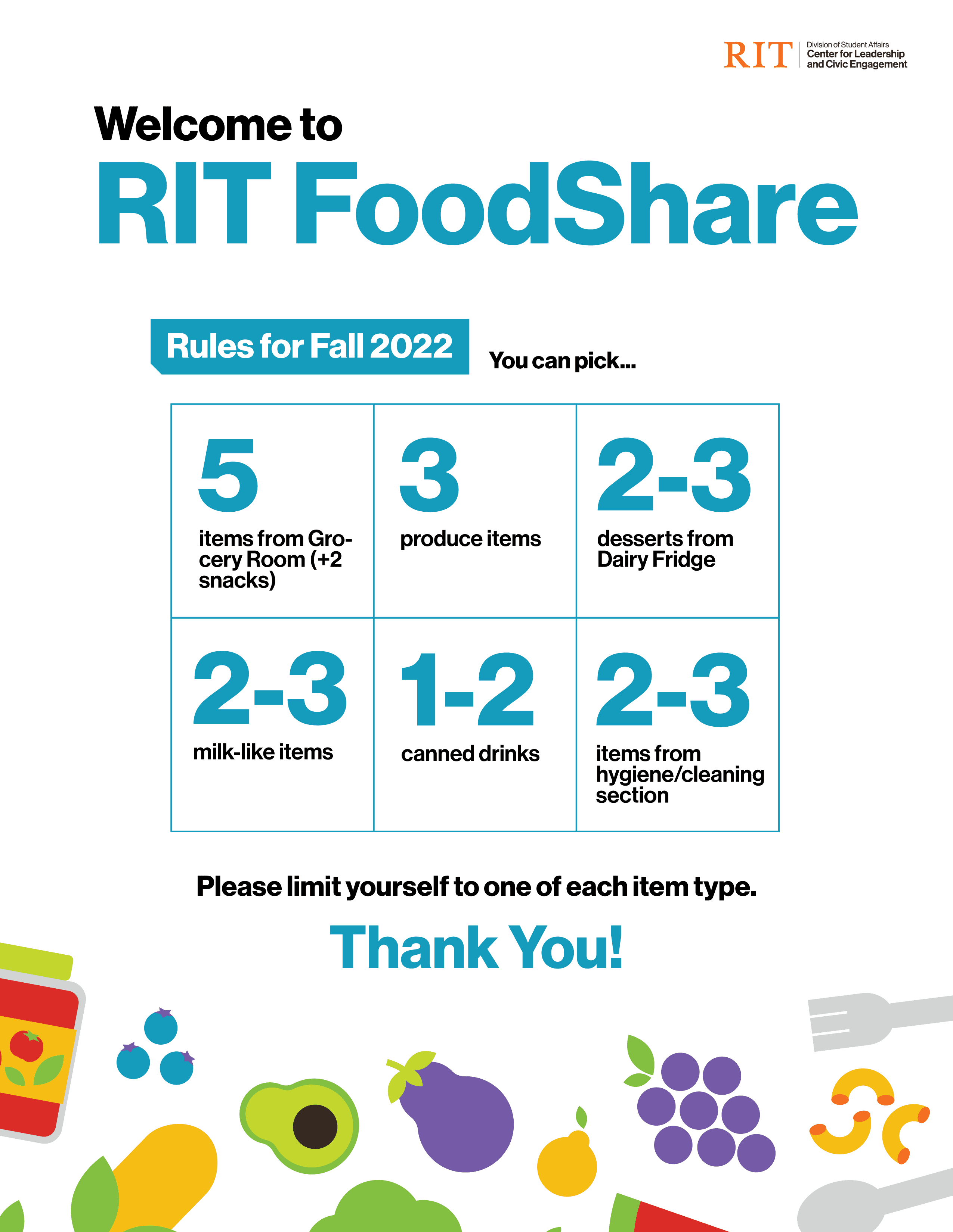 Helped to create a brand identity for the RIT FoodShare Center, a place that aims to reduce food waste across campus and provide RIT community members with access to safe food.